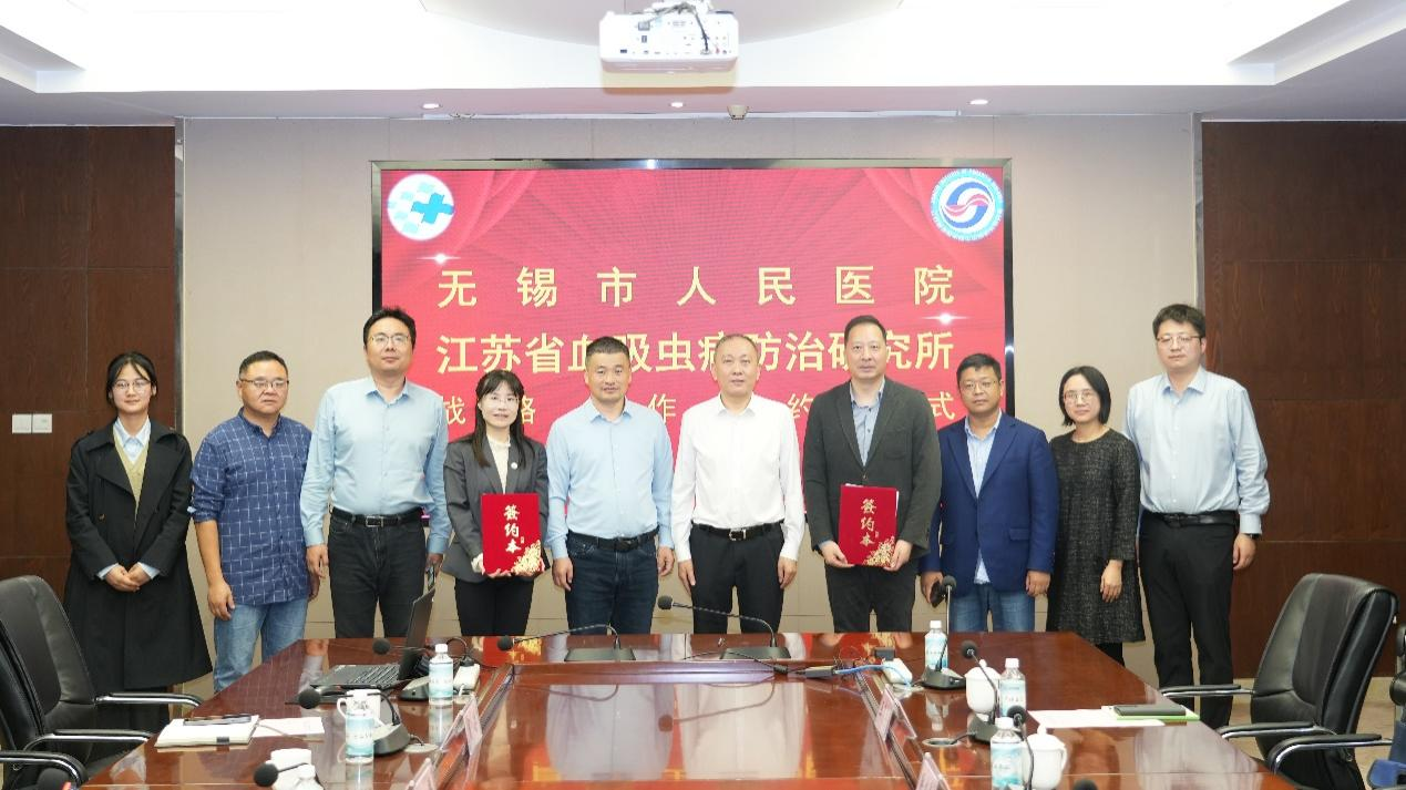 2025年11月6日下午,江苏省血吸虫病防治研究所与无锡市人民医院战略性合作框架协议签约仪式顺利举行,仪式由我所党委书记、所长曹俊主持。无锡市第一人民医院党委书记高宇峰、许红阳副院长、科教处及宣传处的相关负责同志莅临,我所李伟副所长、王玠副所长及中心实验室相关人员共同参与。
