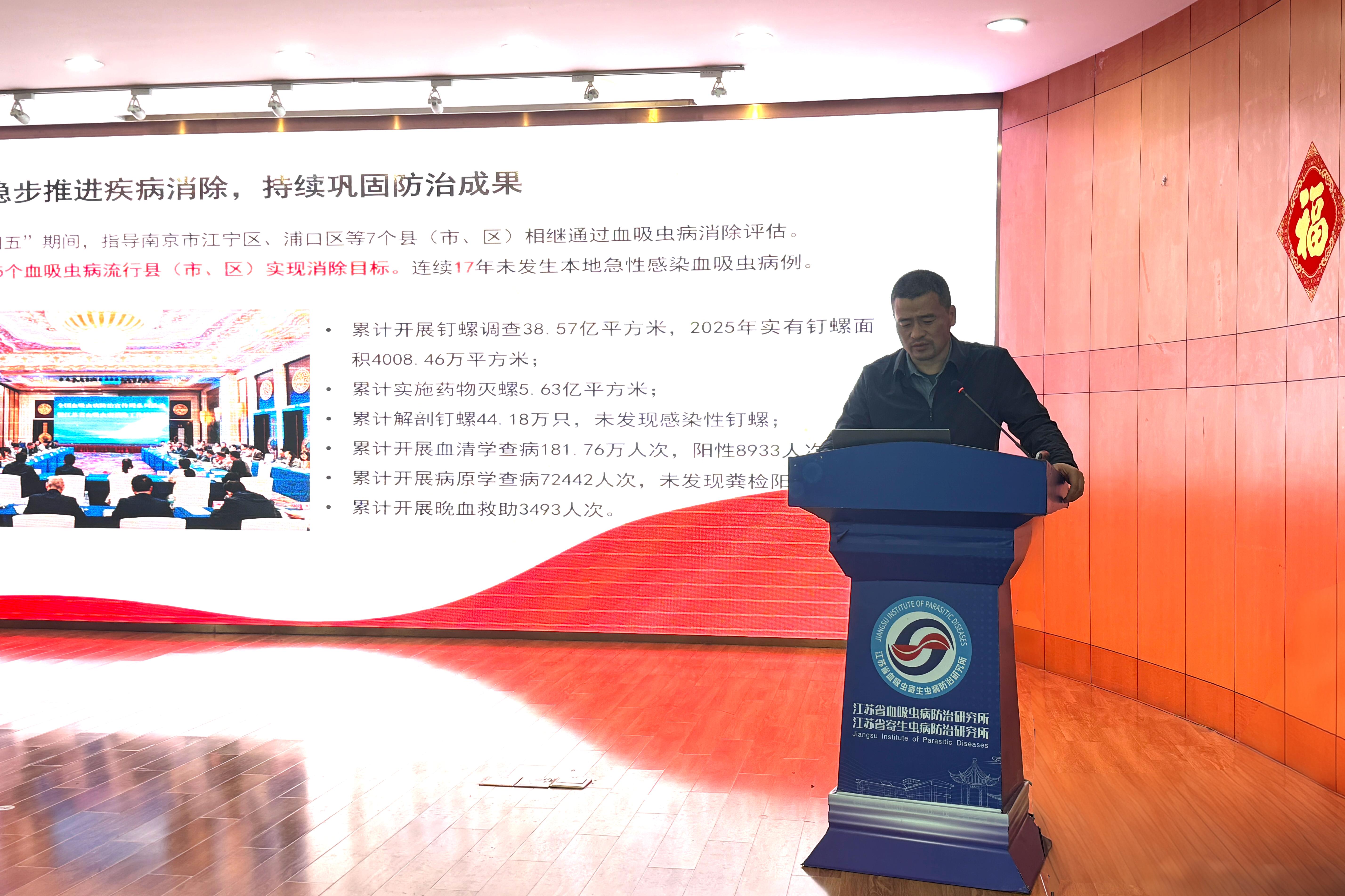 会上,省血防研究所党委书记、所长曹俊以“守正创新铸辉煌 砥砺奋进谱新篇”为题作工作报告。他回顾了“十四五”期间全省血寄防工作取得的成绩,深入剖析了当前面临的监测体系完善、科技创新转化、国际合作拓展等挑战,并明确了下一阶段目标。