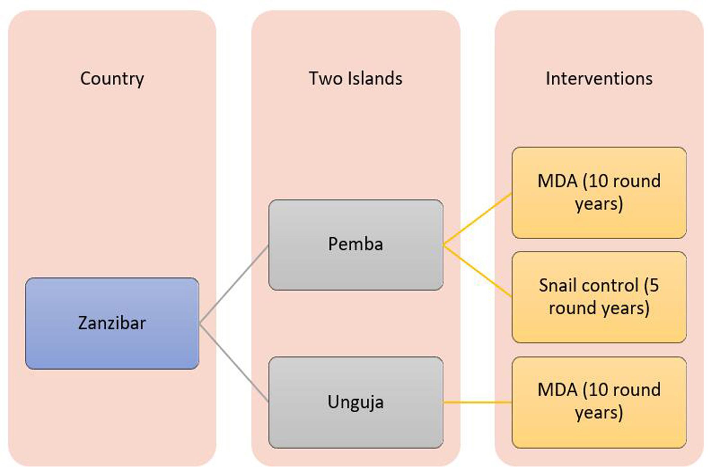 血吸虫病是一种严重和被忽视的全球热带疾病,影响2.3亿多人,其中95%以上的感染集中在非洲。多年来,非洲国家主要的血吸虫病控制策略侧重于大规模人群服药(MDA),但难以消除血吸虫病。研究收集2012-2021年间桑给巴尔消除血吸虫病ZEST项目(其它国家援助)和中国援助桑给巴尔血吸虫病防治项目的监测数据,采用多元回归拟合模型和joinpoint回归模型进行分析,比较单纯MDA防控策略与水泡螺控制综合防控策略情形下,人群血吸虫病感染率的变化趋势和差异,验证中国血吸虫病防治经验是否适用于非洲区域。