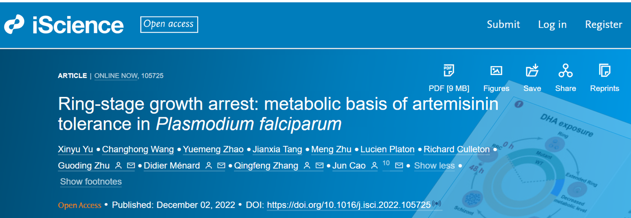 江苏省血吸虫病防治研究所博士后俞心愉为本文第一作者;江苏省血吸虫病防治研究所曹俊研究员、同济大学医学院张青锋教授、法国巴斯德研究所Didier Ménard教授、江苏省血吸虫病防治研究所朱国鼎研究员为本文共同通讯作者。