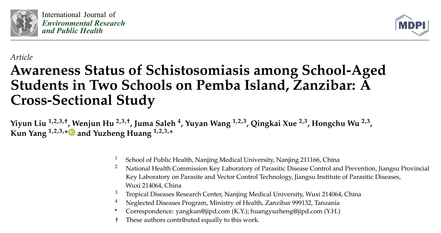 南京医科大学公共卫生学院硕士研究生刘益昀和江苏省血吸虫病防治研究所胡雯珺为本文共同第一作者,黄玉政副研究员和杨坤研究员为本文的共同通讯作者。该文发表于International Journal of Environmental Research and Public Health (IF=4.614),原文链接:https://www.mdpi.com/1660-4601/20/1/582