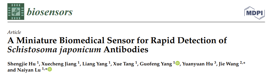 近日,我所联合江南大学在传感领域知名期刊《Biosensors》上发表了题为“A Miniature Biomedical Sensor for Rapid Detection of Schistosoma japonicum Antibodies”的研究性论著。