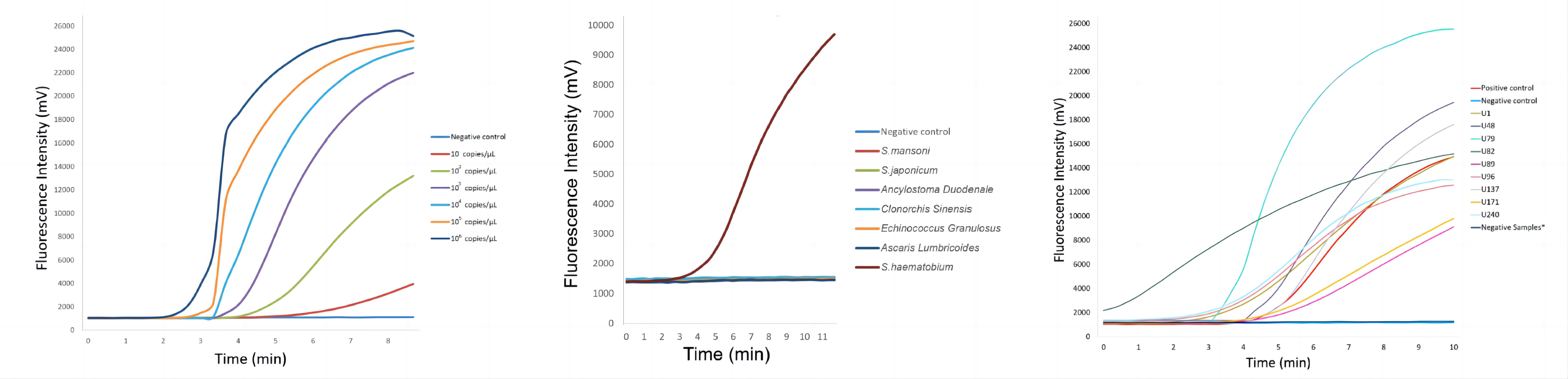 江苏省血吸虫病防治研究所杨坤团队建立了一种可用于埃及血吸虫病检测的新型核酸等温扩增技术,相关成果近日以题为“Development and performance of recombinase-aided amplification (RAA) assay for detecting Schistosoma haematobium DNA in urine samples”于细胞出版社(Cell Press)旗下综合性跨学科期刊Heliyon(IF=4.0)杂志上论著形式发表。该方法可在39 ℃、20 min内特异性扩增埃及血吸虫基因组DNA,灵敏度高,最低可检出10拷贝的质粒模板。与日本血吸虫、曼氏血吸虫、十二指肠钩虫、肝吸虫、细粒棘球绦虫、蛔虫等没有交叉反应。采用这一方法检测57份来自非洲桑给巴尔埃及血吸虫流行区的尿液样本,检出9份阳性样本和48份阴性样本,与目前埃及血吸虫检测的“金标准”尿液过滤镜检法的结果一致。该方法操作简单、反应快速,特异性强,可对检测结果进行实时观察,适用于境外埃及血吸虫病流行区的现场检测,也为我国输入性血吸虫病的快速检测提供了新的技术手段。