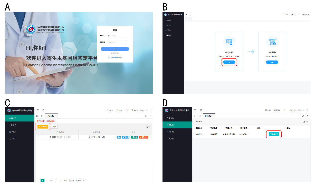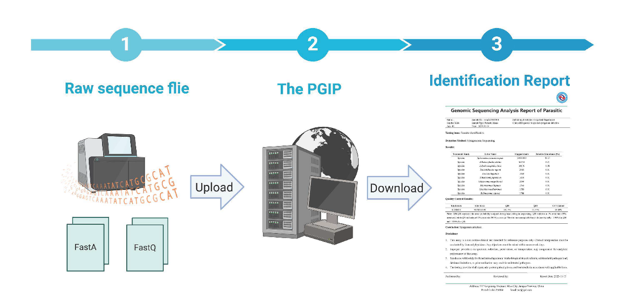 目前,PGIP已正式上线(平台地址:http://pgip.jipd.com:1443/f),并成功完成多例寄生虫感染的鉴定,降低了临床医生和公共卫生人员的技术使用门槛,推动了宏基因组下一代测序技术在常规诊断中的应用。