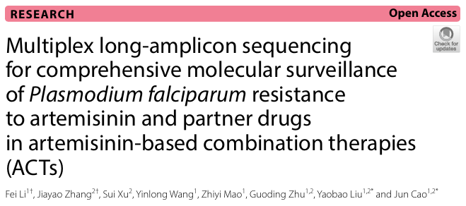 近日,江苏省血吸虫病防治研究所在国际知名期刊《Parasites & Vectors》上发表了题为“Multiplex long-amplicon sequencing for comprehensive molecular surveillance of Plasmodium falciparum resistance to artemisinin and partner drugs in Artemisinin-Based Combination Therapies (ACTs)”的研究性论著。该研究成功研发了一种基于多重长扩增子测序的恶性疟原虫青蒿素及其配伍用药抗药性分子监测工具。