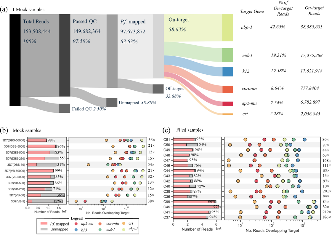 研究结果显示,该技术对静脉血样本的检测灵敏度达到5 parasites/μL,对滤纸血样本达到50 parasites/μL,显著高于现有监测技术的检测限,对来自刚果民主共和国的16份现场样本进行了检测验证,所有样本均成功获得完整的抗药性基因分型结果。值得一提的是,该技术将单样本检测成本降至15.60美元(较现有技术降低60%-290%),为在资源有限地区推广应用提供了可能。