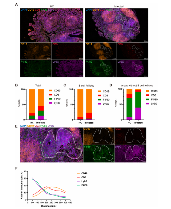 该研究依托感染小鼠模型,整合单细胞RNA测序、多重免疫荧光和转录组分析等先进技术,取得以下重要发现: