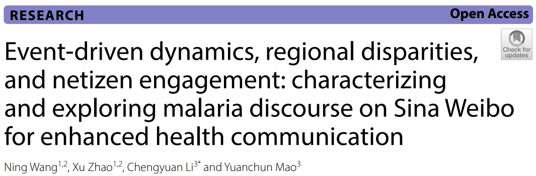 近日,江苏省血吸虫病防治研究所在Malaria Journal上发表题为《Event-driven dynamics, regional disparities, and netizen engagement: characterizing and exploring malaria discourse on Sina Weibo for enhanced health communication》的研究性论著。