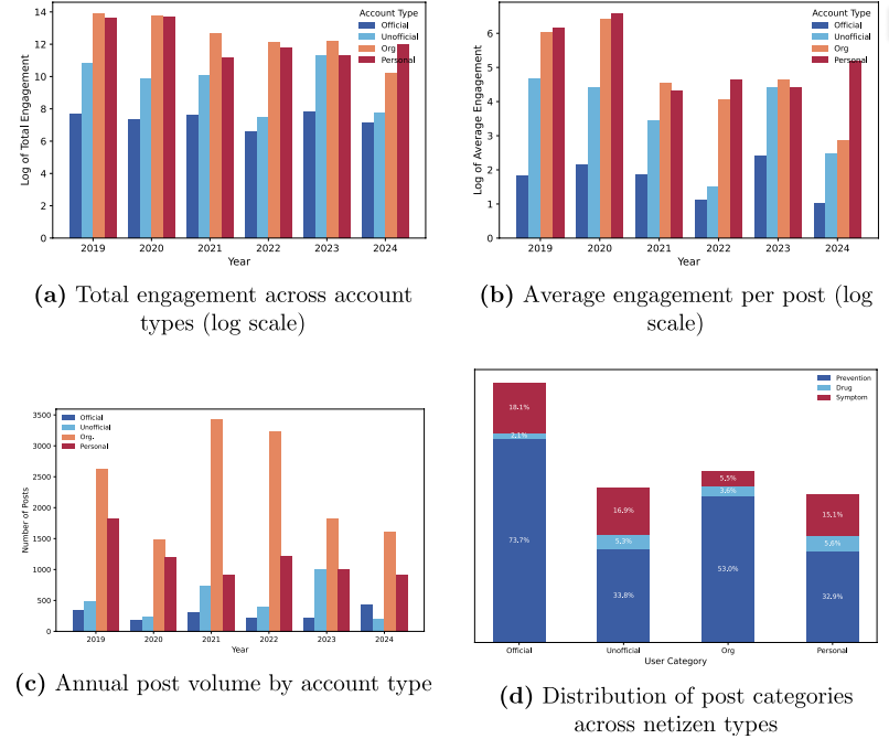该研究于 2019 年 1 月至 2024 年 8 月期间在新浪微博收集到 81010 条疟疾相关帖子,分析发现网民对疟疾的关注呈事件驱动特征,在我国对非卫生援助、公共卫生事件及世界 / 中国疟疾日前后达到高峰,且负面事件引发的参与时长约为正面事件的 1.5 倍;区域讨论上,涉非内容虽略有下降但仍占年度区域特定帖子的 60% 以上,而涉亚、美话题较分散;不同类型账号讨论重点各异,官方卫生类账号侧重疟疾预防但发帖量少,个人账号更关注治疗与健康经历分享,非官方卫生类账号话题分布均衡且重视疫苗与科研,组织类账号则提供疟疾防控机构信息。