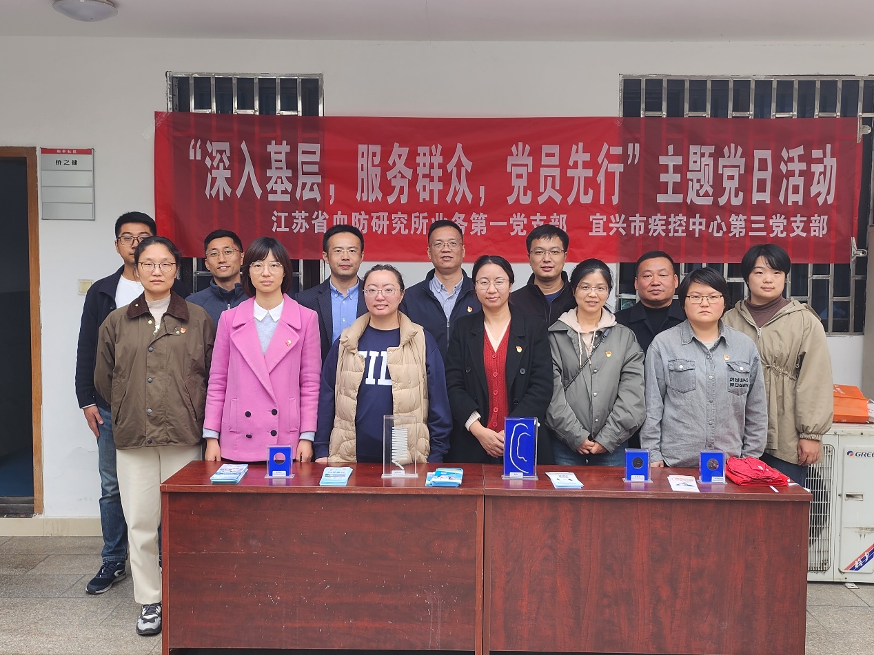 11月22日,省血防研究所业务第一党支部联合宜兴市疾控中心第三党支部,走进宜兴市宜城街道和平社区,开展“深入基层,服务群众,党员先行”为主题的党日活动暨健康科普进基层志愿服务,助力社区群众营造良好健康生活习惯。